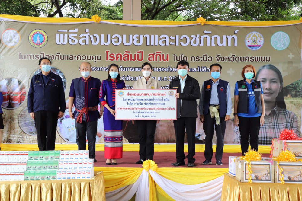 สำหรับรายงานสถานการณ์โรคลัมปี สกิน จ.นครพนม (ณ วันที่ 3 มิ.ย.64) ตำบลที่มีสัตว์ป่วยด้วยโรคลัมปี สกิน ในโค-กระบือ จำนวน 97 ตำบล 578 หมู่บ้าน เกษตรกรได้รับผลกระทบจำนวน 1,826 ราย แบ่งเป็นสัตว์ป่วย 3,652 ตัว ตาย 95 ตัว สัตว์ร่วมฝูง จำนวน 9,296 ตัว และสัตว์หายป่วย จำนวน 1,289 ตัว