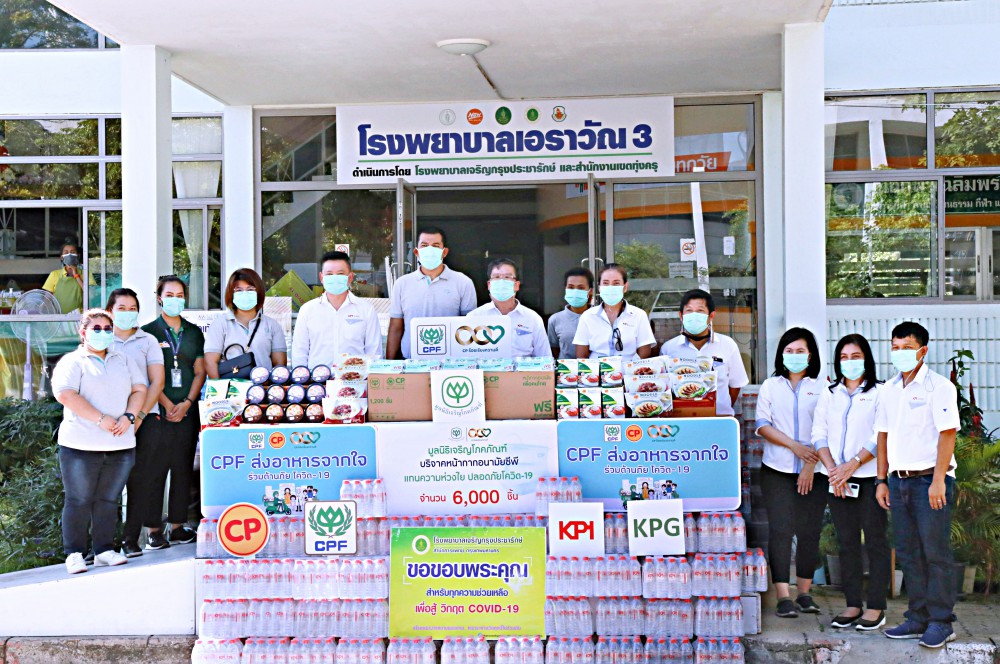 บริษัท เจริญโภคภัณฑ์อาหาร จำกัด (มหาชน) หรือซีพีเอฟ มูลนิธิเจริญโภคภัณฑ์ และ บริษัท เกษตรภัณฑ์อุตสาหกรรม จำกัด หรือเคพีไอ ผนึกกำลัง เดินหน้า “โครงการ CPF ส่งอาหารจากใจ ร่วมต้านภัยโควิด-19” ตามเจตนารมณ์ประธานอาวุโสธนินท์ เจียรวนนท์ เครือเจริญโภคภัณฑ์ อย่างต่อเนื่อง ล่าสุด มอบอาหารสำเร็จรูปพร้อมรับประทาน น้ำดื่ม และหน้ากากอนามัย เพื่อเป็นกำลังใจและสนับสนุนภารกิจทีมแพทย์ พยาบาล และบุคลากรทางการแพทย์ที่ดูแลผู้ป่วยโควิด ตลอด 24 ชั่วโมง โดยมี นายแพทย์เกรียงไกร ตั้งจิตมณีศักดา ผู้อำนวยการ โรงพยาบาลเอราวัณ 3 เป็นผู้รับมอบ จาก นายวินัย จันทร์เมือง และนายสมชาย ไพบูลย์พลาย้อย เป็นตัวแทนซีพี-ซีพีเอฟ ส่งมอบ ณ โรงพยาบาลสนาม ศูนย์กีฬาเฉลิมพระเกียรติทุ่งครุ