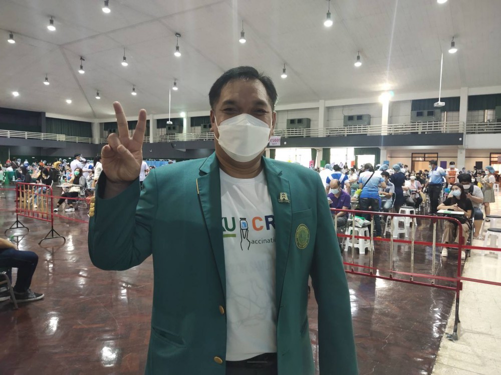 อธิการบดี มก.กล่าวอีกว่า การทำงานซึ่งต้องได้รับพลังความร่วมมือ จากจิตอาสา ทุกภาคส่วนและ การสนับสนุนทั้งอาหาร เครื่องดื่ม อุปกรณ์การแพทย์ จากการเป็นศูนย์ฉีดที่อย่างน้อย 7 เดือน โดยในโดสที่ 1 เดือน มิย.-กย. และ โดสที่ 2 กย.-ธค นั้น และใช้งบประมาณ สนับสนุน มีทีมจิตอาสาจำนวนมากและมีประสิทธิภาพ ที่ได้รับการสนับสนุนอย่างเต็มที่จากแพทย์ พยาบาล นิสิตเก่า บุคลากร นิสิต และประชาชนโดยทั่วไป จึงขอเชิญชวน ฉีดวัคซีนกันนะครับ อยากเห็นคนไทย กลับมามีรอยยิ้ม ใช้ชีวิตอย่างมีความสุข