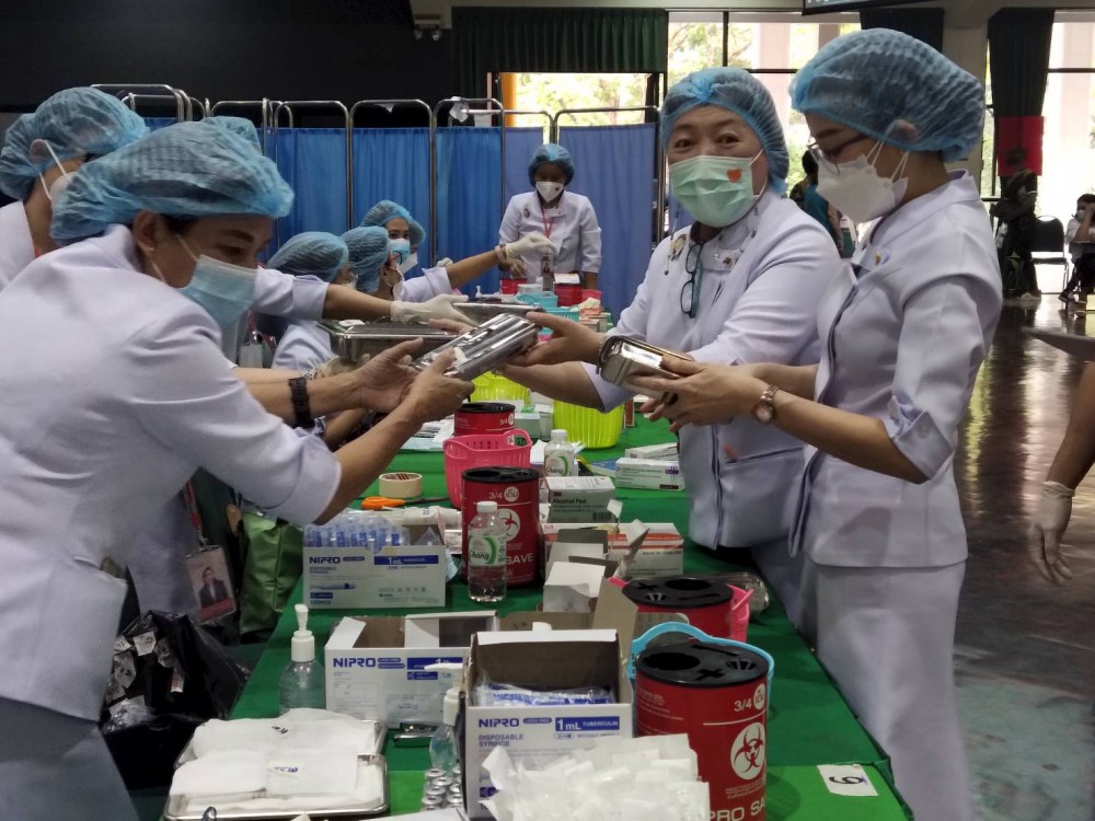 สำหรับวันนี้เริ่มรอบการฉีดวัคซีนเวลา 8.00 น และจะเรียกรอบต่อไปทุกๆ15 นาที เสร็จสิ้นที่เวลาประมาณ 17.00 น. รวมฉีดได้ทั้งหมด 4,691 คน โดยบรรยากาศทั่วไปเป็นไปด้วยความเรียบร้อย สะดวก รวดเร็ว เบ็ดเสร็จในจุดเดียว ด้วยระบบการฉีดวัคซีนภาคสนามที่พัฒนาโดยราชวิทยาลัยจุฬาภรณ์ และ Application CRA CARE ที่นำมาใช้เป็นรูปแบบใหม่ที่ราชวิทยาลัยจุฬาภรณ์ร่วมกันพัฒนากับศูนย์เทคโนโลยีสารสนเทศและการสื่อสาร สำนักปลัดกระทรวงสาธารณสุข และ บมจ. แอดวานซ์ อินโฟร์ เซอร์วิส (AIS) โดยใช้ Tablet และ Card Reader ในการลงทะเบียนและบริหารจัดการข้อมูลและให้คนรับวัคซีนนั่งอยู่กับที่ตั้งแต่เริ่มต้นลงทะเบียนด้วยบัตรประชาชน วัดความดัน ฉีดวัคซีน และเฝ้าระวังอาการหลังฉีดจนเสร็จโดยไม่ต้องเดินไปตามจุดต่าง ๆ โดยเจ้าหน้าที่ พยาบาล และแพทย์จะเป็นผู้ที่เดินให้บริการแก่ผู้ที่มารับวัคซีนเอง ซึ่งวิธีดังกล่าวนี้จะช่วยประหยัดทรัพยากรบุคคล และแบ่งเบาภาระของเจ้าหน้าที่