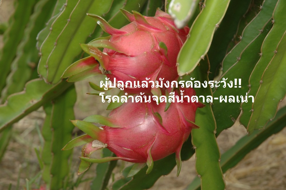 กรมวิชาการเกษตร แจ้งว่า ระยะนี้จะมีอากาศร้อน และมีฝนตกหนักบางพื้นที่ เตือนเกษตรกรผู้ปลูกแก้วมังกรเฝ้าระวังการระบาดของโรคลำต้นจุดสีน้ำตาลและผลเน่า มักพบโรคได้ในทุกระยะการเจริญเติบโตของแก้วมังกร จะพบแสดงอาการเริ่มแรกที่กิ่งหรือผลมีจุดสีเหลือง จากนั้นพัฒนาเป็นตุ่มนูนเล็กสีน้ำตาลคล้ายสี สนิมเหล็ก บางครั้งพบแผลสีเหลืองฉ่ำน้ำ หากอาการรุนแรงแผลจะเน่า ถ้าเป็นที่กิ่งจะทำให้เนื้อเยื่อตรงแผลหลุดเห็นเป็นรูหรือเว้าแหว่ง สำหรับผลที่มีอาการรุนแรง จะทำให้กลีบผลไหม้แห้งเป็นสีดำ และผลเน่าในที่สุด