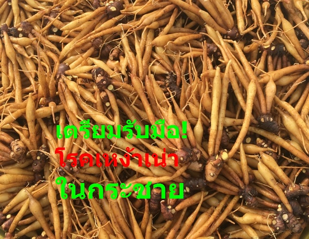 ช่วงนี้จะมีอากาศร้อนและมีฝนตกหนักในบางพื้นที่ กรมวิชาการเกษตร แนะเกษตรกรผู้ปลูกกระชายให้เฝ้าระวังโรคเหง้าเน่า ที่สามารถพบได้ในระยะการเจริญเติบโตของต้นกระชาย อาการเริ่มแรกใบแสดงอาการม้วนห่อ สีของใบซีด ต่อมาเปลี่ยนเป็นสีเหลืองและแห้ง บริเวณโคนต้นมีอาการฉ่ำน้ำ ลำต้นเน่าหลุดออกจากเหง้าได้ง่าย หักพับ แต่ไม่มีกลิ่นเหม็น หากตรวจดูที่ลำต้นจะพบส่วนของท่อลำเลียงน้ำและอาหารมีสีน้ำตาลเข้ม เมื่อผ่าลำต้นตัดตามขวางและนำมาแช่ในน้ำสะอาดประมาณ 5-10 นาที จะพบของเหลวสีขาวคล้ายน้ำนมไหลออกมา