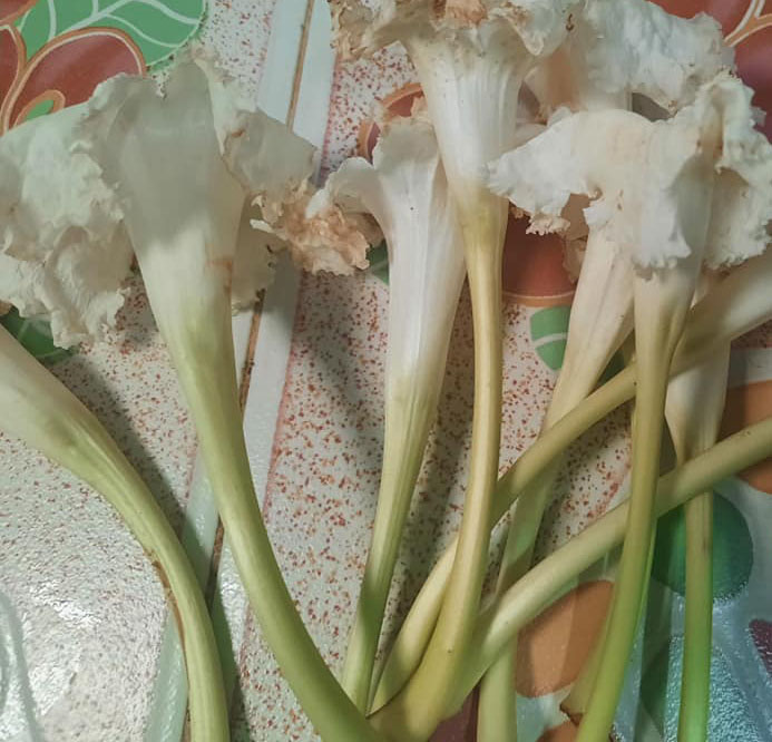 ช่วงนี้จะเป็นช่วงปลายๆของ “ดอกแคนา” ที่บานสะพรั่งสีขาวนวลสวยงาม น่าชม น่ารับประทาน ซึ่งปกติแล้วแคนา หรือแคป่า บ้างก็ว่า แคขาว จะออกดอกตั้งแต่เดือนมีนาคมแล้ว แต่ตอนก็ยังมีอยู่แต่ไม่ดกนัก เป็นดอกที่มีขนาดใหญ่ออกมาเป็นช่อ ลักษณะของดอกคล้ายรูปแตรสีขาวนวลออกตามปลายกิ่ง โคนดอกติดกันมีก้านดอกยาวราว 3-5 ซม.แต่ละช่อจะมีอยู่ 2-10 ดอก ยาวถ้ารวมทั้งหมดตั้งแต่ก้านดอกด้วยราวๆ 12-14 ซม.ปลายดอกเป็นฉก 5 แฉก