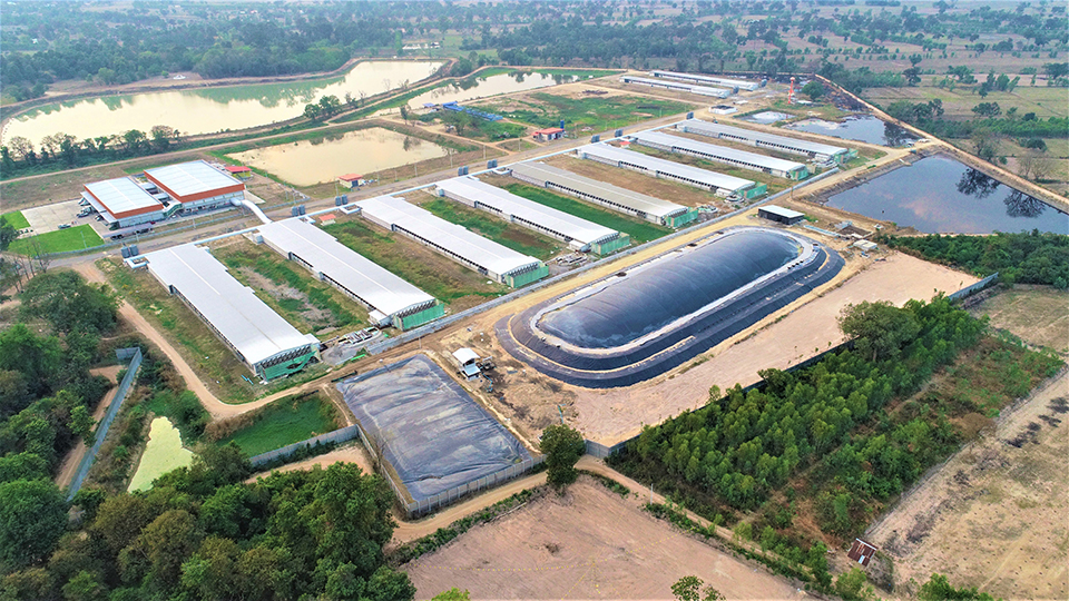 ทั้งนี้เพื่อลดของเสียในกระบวนการผลิต รวมไปถึงการนำของเสียกลับไปใช้ให้เกิดประโยชน์ ซึ่งในกระบวนการเลี้ยงไก่ มีการจัดการของเสีย ด้วยระบบการผลิตก๊าซชีวภาพจากมูลไก่ หรือไบโอแก๊ส (Biogas) ช่วยลดกลิ่น ลดการปล่อยก๊าซเรือนกระจกออกสู่ชั้นบรรยากาศ และยังได้พลังงานสะอาดจากกระบวนการหมักก๊าซมีเทนเปลี่ยนน้ำเสียเป็นไบโอแก๊ส สามารถนำไปผลิตเป็นกระแสไฟฟ้าสำหรับใช้ภายในคอมเพล็กซ์ ช่วยลดต้นทุนด้านไฟฟ้าถึง 65-85% โดยในปี 2563 คอมเพล็กซ์ไก่ไข่ 7 แห่ง สามารถประหยัดค่าไฟฟ้าได้กว่า 103 ล้านบาท และลดการปล่อยก๊าซเรือนกระจกได้กว่า 113,000 ตันคาร์บอนไดออกไซด์เทียบเท่า