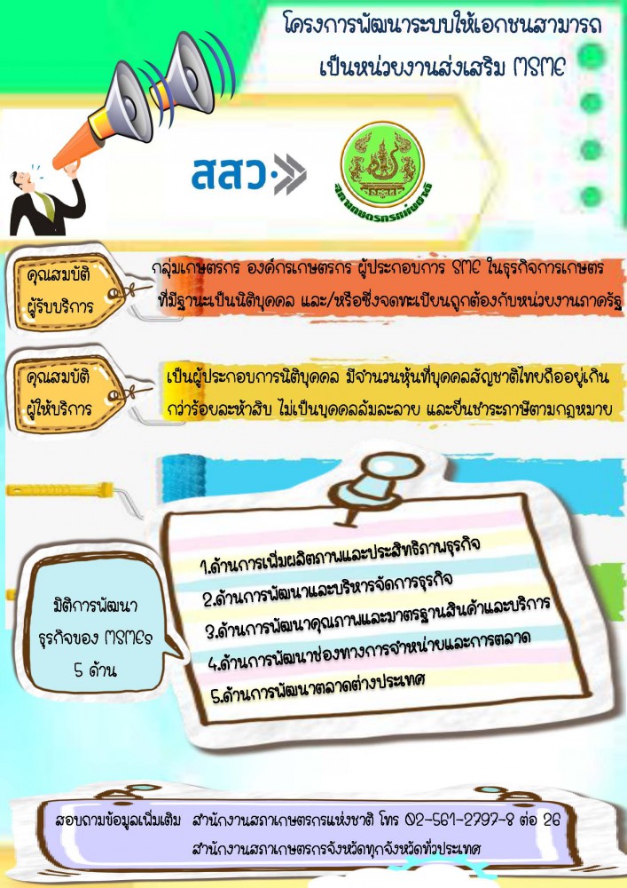 ทั้งนี้เพื่อสร้างกลไกการสนับสนุนให้ผู้ให้บริการทางธุรกิจภาคเอกชนสามารถเข้ามามีบทบาทในการยกระดับศักยภาพการดำเนินธุรกิจของผู้ประกอบการ MSME ในประเด็นที่ตรงกับความต้องการ เพื่อให้มีกระบวนการต้นแบบในการให้ความช่วยเหลือและสนับสนุนผู้ประกอบการ MSMEs ผ่านระบบผู้ให้บริการทางธุรกิจที่มีประสิทธิภาพ และสร้างโอกาสให้ภาคเอกชนได้มีส่วนร่วมในการพัฒนาธุรกิจของผู้ประกอบการ MSME มากยิ่งขึ้น