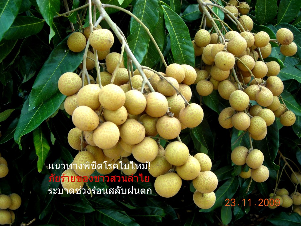 กรมวิชาการเกษตร แจ้งเตือนระยะนี้ว่า มีอากาศร้อน และมีฝนตกหนักในบางพื้นที่ จึงแนะเกษตรกรชาวสวนลำไยให้เตรียมรับมือการระบาดของโรคใบไหม้ สามารถพบได้ในระยะที่ต้นลำไยพัฒนาผลจนถึงในระยะการเก็บเกี่ยวผลผลิตลำไย