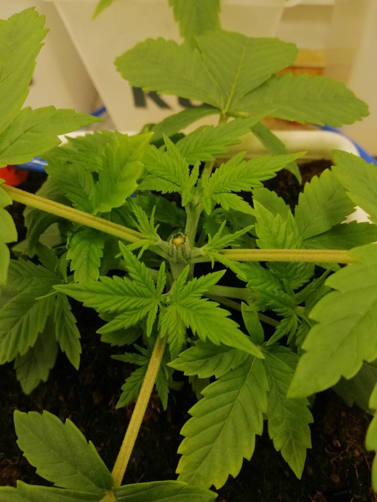 หลังจากย้ายต้นเข้าห้องนี้มา 2 สัปดาห์ จะเริ่มเห็นเพศของต้นกัญชา และทำการสำรวจเพศของต้นกัญชาทุกต้น ถ้าต้นใดเป็นตัวผู้จะคัดออก ดังนั้นต้นกัญชาที่ปลูกทั้งหมด 108 ต้น จะเป็นเมล็ดพันธุ์ต้นตัวเมียเท่านั้น (feminized seed)
