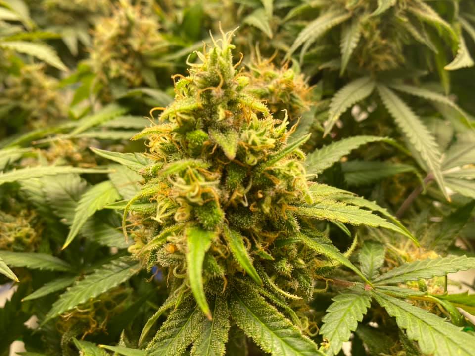 จากนั้นจึงเริ่มตัดแต่งทรงต้น (training) โดยใช้เทคนิคการตัดยอด (topping) เพื่อให้ตาข้างแตกเป็นยอดออกมา และตัดยอดแบบนี้ประมาณ 3 – 4 ครั้งเพื่อให้ได้ยอดประมาณ 12 – 16 ยอดต่อต้น และเลี้ยงไว้ในห้องปลูกประมาณ 6 สัปดาห์ ซึ่งสามารถวางกระถางชิดกันได้ จากนั้นย้ายต้นที่ได้ไปอีกห้องปลูกเพื่อกระตุ้นการสร้างตาดอก ในห้องปลูกจะจัดระยะถางเป็น 40 x 40 เซนติเมตร มีการขึงตาข่ายและมีการใช้เทคนิคการปิดต้น (super cropping) เพื่อช่วยบังคับแต่ละยอดให้กระจายเต็มพื้นที่ และทำให้ยอดอยู่ในระดับเดียวกัน