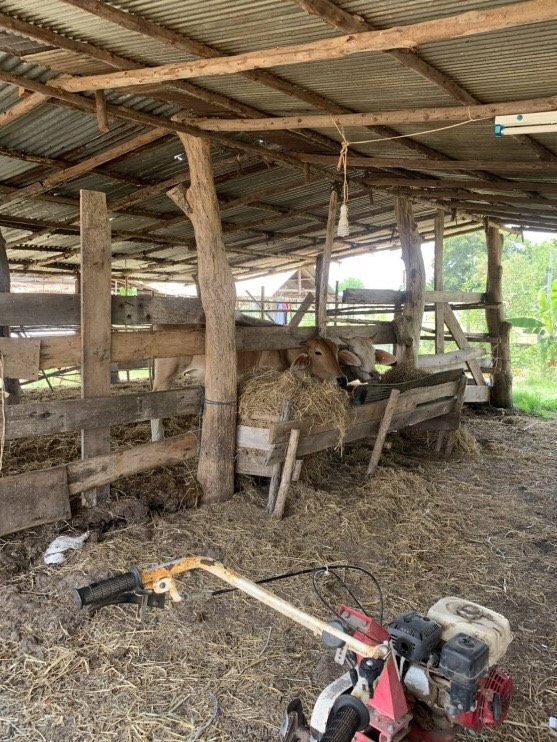 นอกจากนี้ เกษตรกรได้รับการสนับสนุนวัสดุอุปกรณ์ในการสร้างบ้าน มูลค่ารายละ 40,000 บาท ขณะนี้เกษตรกรมีการดำเนินกิจกรรมในพื้นที่ที่ได้รับ เช่น ปลูกพืชผักสวนครัวเพื่อใช้บริโภคในครัวเรือน รวมทั้งเลี้ยงสัตว์ (โคเนื้อ) ในพื้นที่บริเวณบ้าน ส่วนที่ทำกิน 5 ไร่ ส่วนใหญ่เกษตรกรจะเพาะปลูกมันสำปะหลังเป็นหลัก ควบคู่กับการปลูกหญ้าเลี้ยงสัตว์ เพื่อเป็นการลดค่าใช้จ่ายในการจัดหาอาหารสัตว์ ทั้งนี้มีเกษตรกรบางรายเพาะปลูกข้าวเพื่อใช้บริโภคในครัวเรือนด้วย