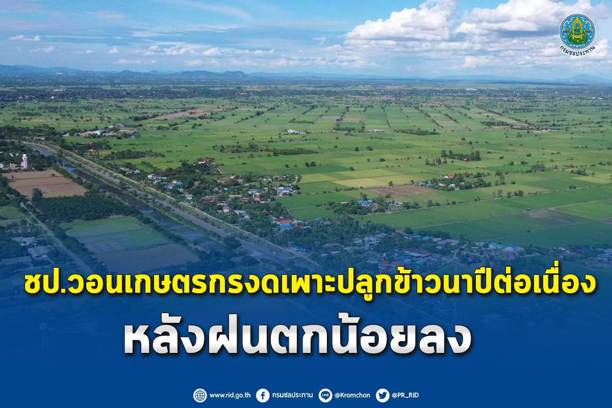 กรมชลประทาน ประสานหลายหน่วยงานให้ประชาสัมพันธ์ขอความร่วมมือเกษตรกร ให้งดการเพาะปลูกข้าวนาปีต่อเนื่อง หลังการเก็บเกี่ยวหลังพบว่าปริมาณฝนตกน้อยลง เผย 4 เขื่อนหลักลุ่มเจ้าพระยามีน้ำใช้ได้เพียง 8 % เท่านั้น