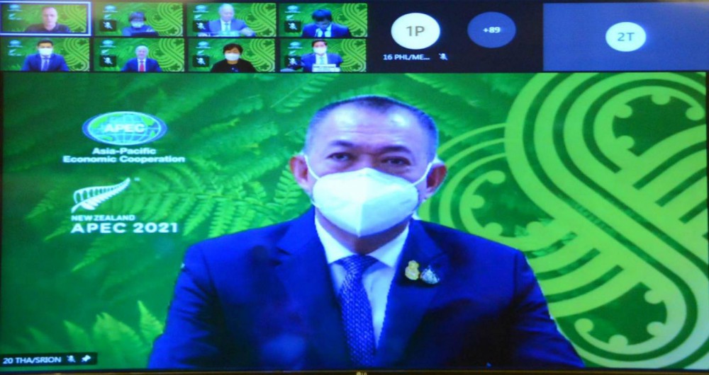 ดร.เฉลิมชัย ศรีอ่อน รัฐมนตรีว่าการกระทรวงเกษตรและสหกรณ์ พร้อมด้วย ดร.ทองเปลว กองจันทร์ ปลัดกระทรวงเกษตรและสหกรณ์ นายระพีภัทร์ จันทรศรีวงศ์ รองปลัดกระทรวงเกษตรและสหกรณ์ นายฉันทานนท์ วรรณเขจร เลขาธิการสำนักงานเศรษฐกิจการเกษตร ดร.วนิดา กำเนิดเพ็ชร์ ผู้อำนวยการสำนักการเกษตรต่างประเทศ และผู้บริหารในสังกัดกระทรวงเกษตรฯ เข้าร่วมการประชุมรัฐมนตรีความมั่นคงอาหารเอเปค 2564 “Food Security Roadmap Towards 2030″