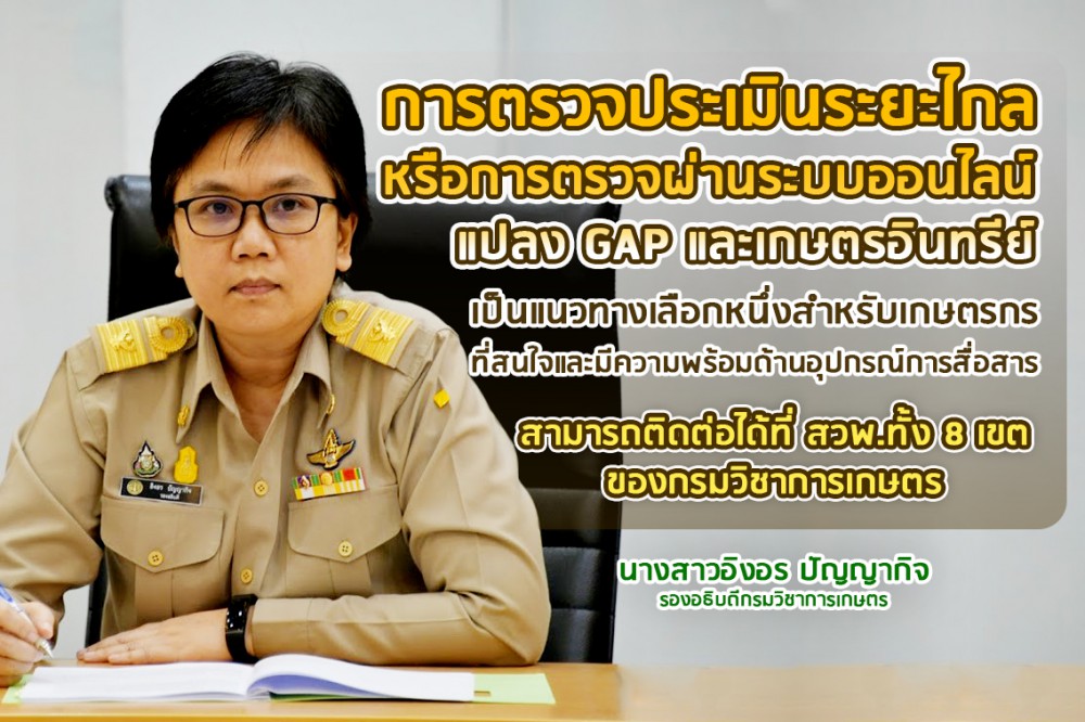 การตรวจประเมินระยะไกลเปรียบเสมือนการลงพื้นที่ตรวจจริงแต่ผู้ตรวจประเมินจะประสานงานกับผู้ขอรับการตรวจประมินผ่านทางเทคโนโลยีสารสนเทศ โดยสามารถแสดงให้เห็นภาพผ่านการใช้กล้อง หรือวีดีโอคอลจากสมาร์ทโฟน ซึ่งขณะนี้มีเกษตรกรหลายรายได้แจ้งความประสงค์ขอรับการตรวจประเมินระะยะไกลกับสำนักวิจัยและพัฒนาการเกษตร (สวพ.) ซึ่งเป็นหน่วยงานในส่วนภูมิภาคของกรมวิชาการเกษตรทั้ง 8 เขตแล้ว ดังนั้นหากเกษตรกรรายใดที่มีความสนใจและมีความพร้อมด้านอุปกรณ์การสื่อสารที่มีประสิทธิภาพต้องการให้กรมวิชาการเกษตรตรวจรับรองแปลง GAP และเกษตรอินทรีย์ผ่านระบบออนไลน์ดังกล่าวสามารถติดต่อได้ที่ สวพ.ทั้ง 8 เขตในพื้นที่ได้ทันที