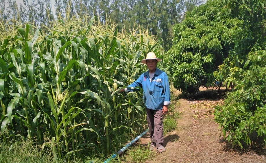 พื้นที่ 2 ไร่ และผักสวนครัว ผลผลิตดีขึ้นจริง ช่วยลดต้นทุนค่าปุ๋ยได้ถึง 50% จากที่เคยใช้ปุ๋ย 4 กระสอบ เหลือเพียง 2 กระสอบ โดยจะใช้น้ำปุ๋ยในช่วงที่ต้นข้าวโพดเล็กๆ จนถึงก่อนออกฝักระยะ 50 วันแรก จากนั้นเมื่อเริ่มออกฝักช่วง40 วันสุดท้าย จะใช้น้ำพลังงานไฟฟ้า