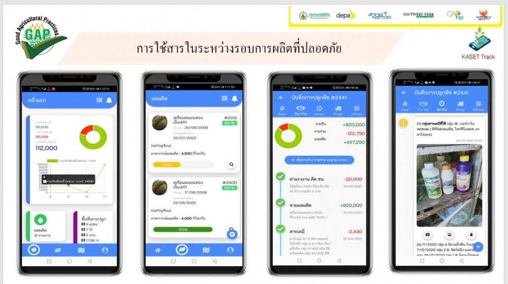 ขณะที่นายบรรเลง ศรีสวัสดิ์ รองนายกองค์การบริหารส่วนตำบลรับร่อ ประธานกลุ่มทุเรียนคุณภาพเนิน 491 จังหวัดชุมพร ได้เล่าประสบการณ์ใช้งาน Kasettrack ว่า เกษตรกรทุกช่วงวัยสามารถนำแอปพลิเคชันดังกล่าวไปใช้ได้จริง ซึ่งช่วยเกษตรกรในการรวมกลุ่ม วางแผนค่าใช้จ่าย บริหารจัดการสวนทุเรียน จดบันทึกข้อมูลเพื่อตรวจรับรองมาตรฐาน GAP ทำให้การผลิตทุเรียนได้คุณภาพ และสามารถตรวจสอบย้อนกลับได้