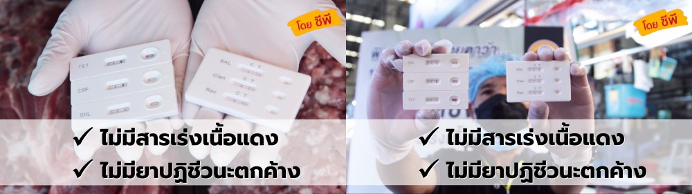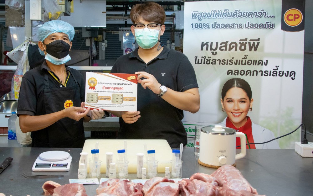 ทั้งนี้ ซีพีเอฟเดินหน้าตรวจสอบสารเร่งเนื้อแดงและสารตกค้างในเนื้อหมูแล้วในตลาดสดหลายพื้นที่ เช่น กรุงเทพมหานคร จังหวัดตราด จังหวัดฉะเชิงเทรา จังหวัดนครราชสีมา และจังหวัดสระบุรี ซึ่งกิจกรรมนี้เป็นตอกย้ำความมั่นใจให้ทั้งคู่ค้าและลูกค้าว่าเนื้อหมูซีพี มีมาตรฐาน ปลอดภัย โดยใช้ชุดตรวจยาปฏิชีวนะและชุดตรวจสารเร่งเนื้อแดงมาตราฐานเดียวกับที่ภาครัฐใช้ในการทดสอบสารตกค้าง