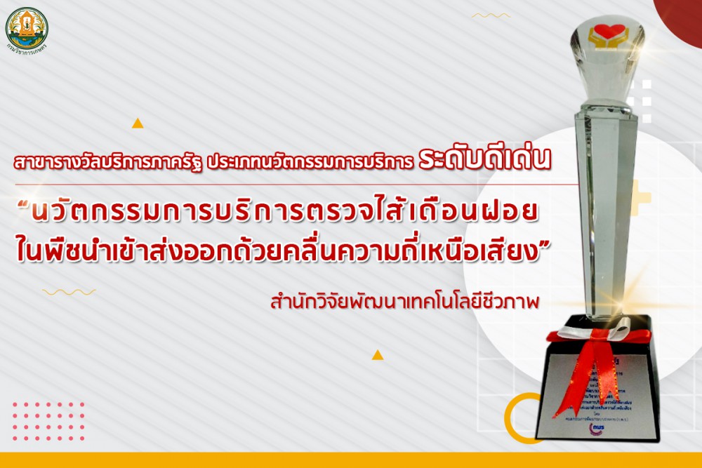 ทำให้ผลงาน“นวัตกรรมการบริการตรวจไส้เดือนฝอยในพืชนำเข้าส่งออกด้วยคลื่นความถี่เหนือเสียง” ได้รับรางวัลสาขาบริการภาครัฐ ประเภทนวัตกรรมการบริการ ระดับดีเด่น ประจำปี 2564 จากสำนักงานคณะกรรมการพัฒนาระบบราชการ (ก.พ.ร.)