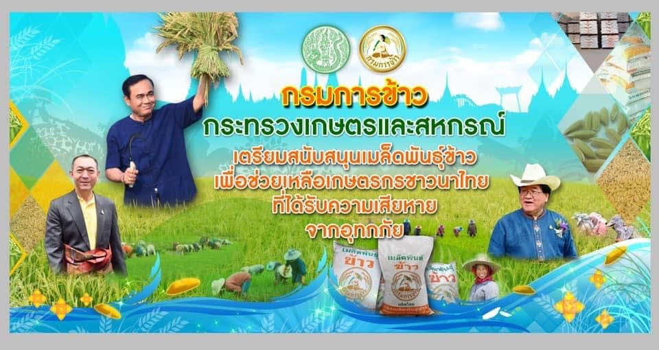 “กรมการข้าวจะให้การช่วยเหลือสนับสนุนเมล็ดพันธุ์ข้าวแก่ผู้ประสบอุทกภัย รายละไม่เกิน 10ไร่ๆละ 7 กิโลกรัม (นาดำ) และไร่ละ 15 กิโลกรัม (นาหว่าน) ซึ่งปริมาณการสนับสนุนบรรเทาฟื้นฟูขึ้นอยู่กับความรุนแรงของการเกิดภัยพิบัติในแต่ละครั้ง หรือสภาพการขาดแคลนเมล็ดพันธุ์ข้าวในพื้นที่ โดยให้เป็นดุลพินิจของคณะกรรมการสำรองเมล็ดพันธุ์ข้าวเพื่อความมั่นคงแห่งชาติทั้งนี้กรมการข้าวขอสงวนสิทธิ์ในการจัดสรรการช่วยเหลือตามปริมาณ/ชนิดเมล็ดพันธุ์ที่ได้รับการจัดสรรงบประมาณตามกิจกรรม” รองอธิบดีกรมการข้าว กล่าว