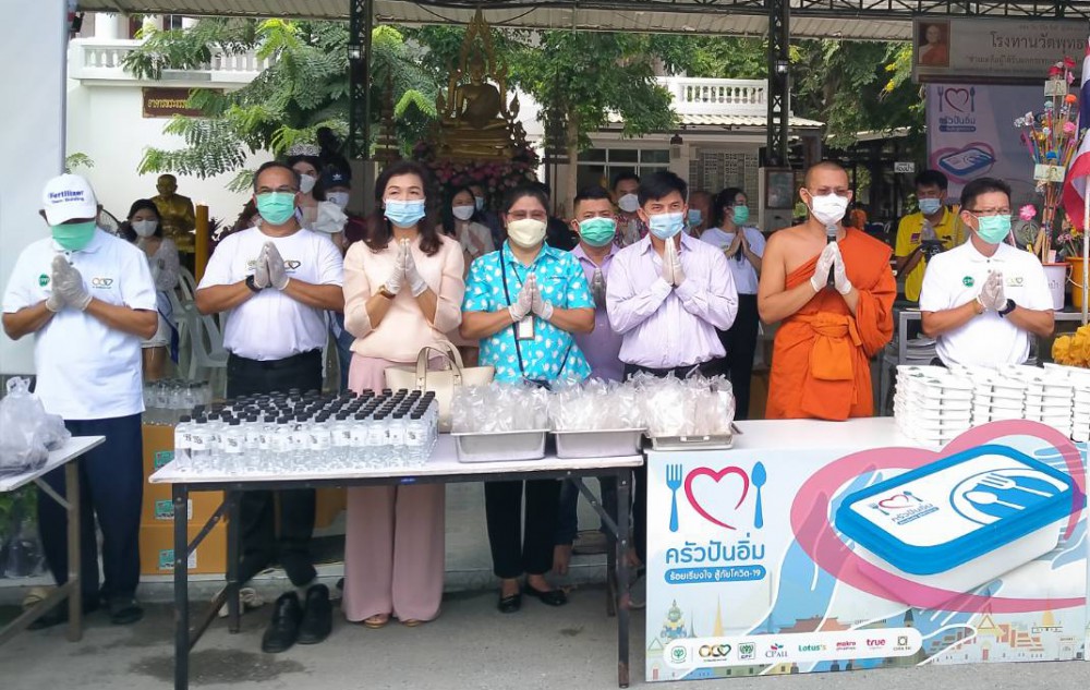 โครงการ “ครัวปันอิ่ม ซีพีร้อยเรียงใจ สู้ภัยโควิด-19” เป็นการผนึกกำลังเครือเจริญโภคภัณฑ์ ร่วมกับพันธมิตรกว่า 100 องค์กร เพื่อส่งมอบข้าวกล่องอุ่นร้อนพร้อมรับประทาน จำนวน 2 ล้านกล่อง โดย 1 ล้านกล่อง จากเครือซีพี และอีก 1 ล้านกล่อง จากร้านอาหารรายย่อยในกทม. และปริมณฑล เป็นอาหารที่ปรุงใหม่ สุก สะอาด ถูกสุขอนามัย มีเมนูอาหารหลากหลายในแต่ละวันเป็นการช่วยธุรกิจร้านอาหารรายย่อย ให้สามารถฝ่าวิกฤตโควิดไปได้