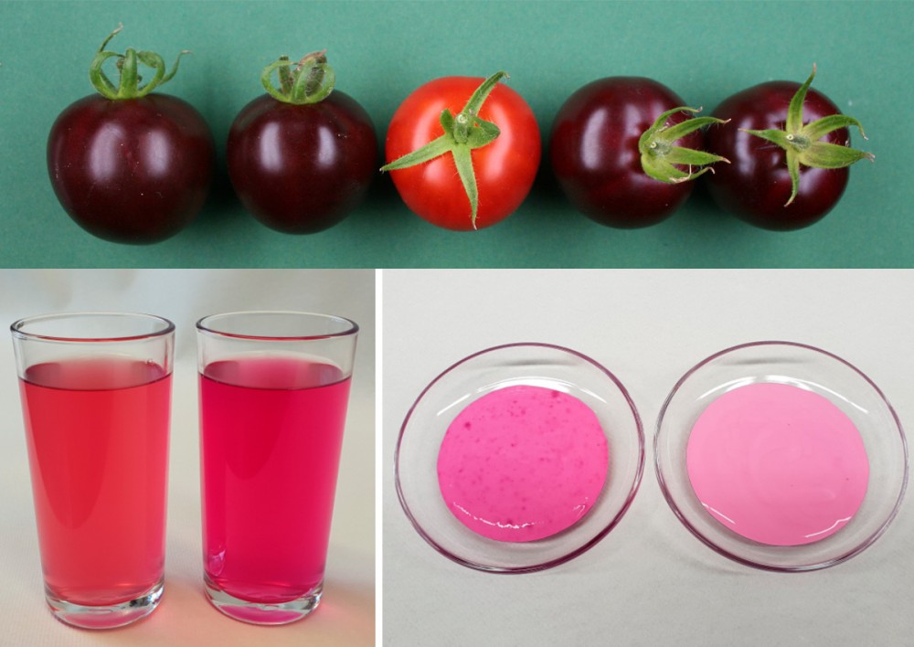 นักวิทยาศาสตร์ได้ถ่ายฝากยีนสำหรับสังเคราะห์สารเบทานิน (Betanin เป็นสารที่ให้สีแดง-ม่วง และช่วยในการต้านอนุมูลอิสระ พร้อมกับป้องกันการเสื่อมของเซลล์ได้ดี) ให้กับต้นมะเขือเทศและกระตุ้นยีนเหล่านี้ให้แสดงออกในผลมะเขือเทศสุก