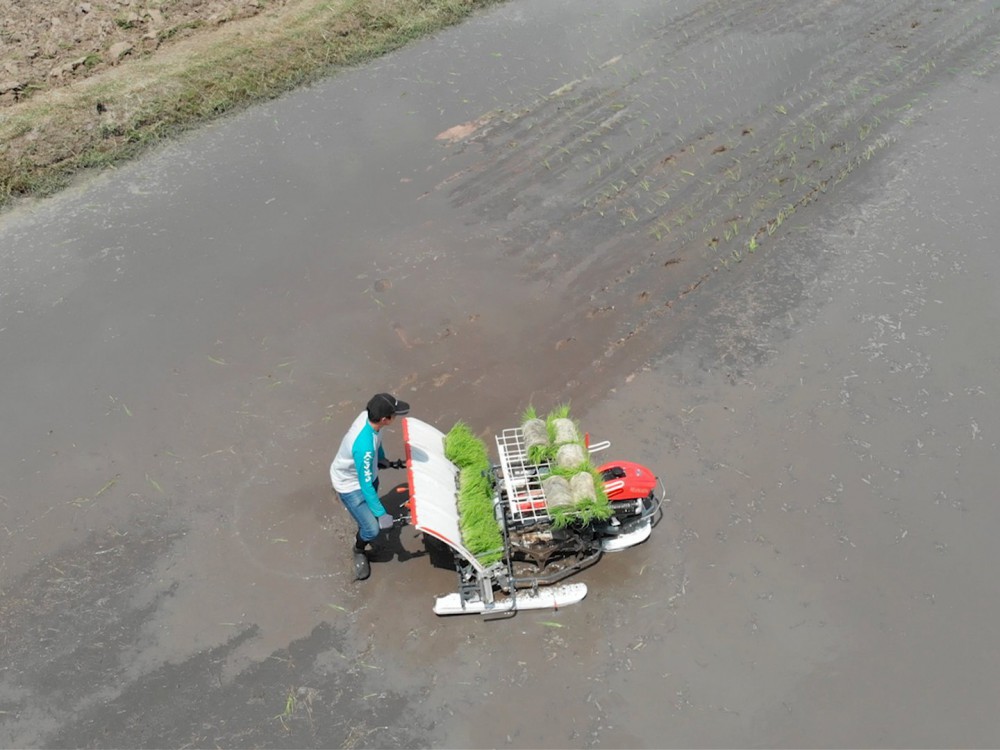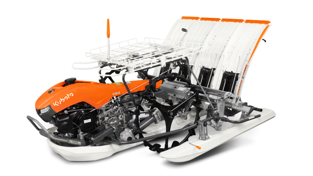 นางวราภรณ์ กล่าวอีกว่า รถดำนาคูโบต้า เดินตาม 4 แถว รุ่น KW4 เพิ่มความสะดวกสบายในการหยิบแผ่นกล้ามาเติมในแผงปักดำ เนื่องจากสามารถปรับชั้นวางแผ่นกล้าสำรองได้ 3 ตำแหน่ง และน้ำหนักเบาเพียง 169 กก. ทำให้คล่องตัวในการทำงาน ขนย้ายสะดวกและยังมีระบบป้อนกล้าแนวตั้งแบบสายพาน หน้ากว้าง 176 มม. เพิ่มพื้นที่สัมผัสแผ่นกล้า ช่วยป้อนกล้าได้อย่างต่อเนื่อง สามารถปรับระยะห่างระหว่างกอได้ถึง 6 ระยะ ตั้งแต่ 14 – 28 ซม.