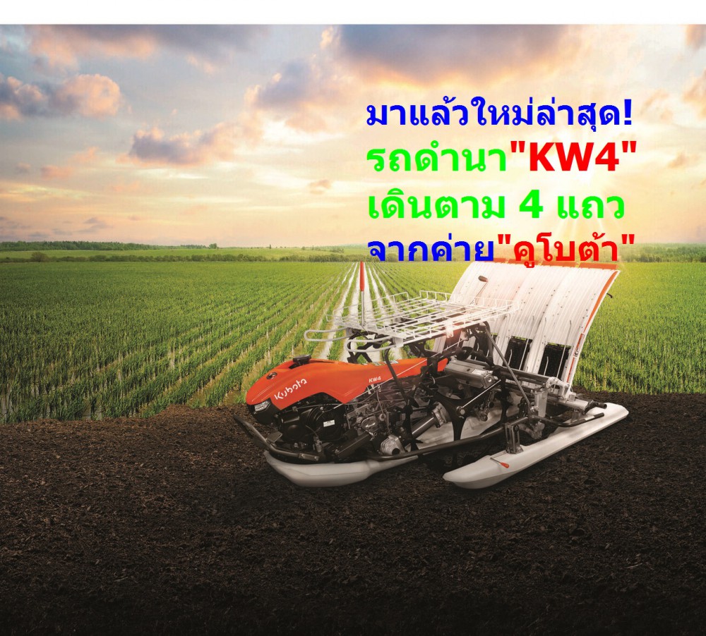 ล่าสุดได้เปิดตัวรถดำนา แบบเดินตาม 4 แถว รุ่น KW4 ที่พัฒนาต่อยอดจากรุ่นเดิม เพื่อให้สามารถดำนาได้อย่างสะดวกสบายมากขึ้น พร้อมประหยัดแรงงานคนและสามารถทำงานได้ไวและต่อเนื่อง โดยปรับโฉมใหม่ให้ดีไซน์ล้ำสมัย สีส้มสะดุดตา พร้อมกับไฟหน้าส่องสว่างแบบ LED เพิ่มทัศนวิสัยของผู้ใช้งานขณะทำงานเวลากลางคืน มาพร้อมความจุถังน้ำมันขนาด 10 ลิตร เครื่องยนต์เบนซินขนาด 5 แรงม้า แบบ OHV (Overhead valves) สามารถทำงานได้ไวและต่อเนื่องได้ถึงวันละ 7-13 ไร่ และทำงานได้คล่องตัวเลี้ยวง่ายเบาแรงแม้ในแปลงนาขนาดเล็ก ด้วยระบบบีบเลี้ยวและวงเลี้ยวแบบซีโร่เทิร์น (Zero-turn)”