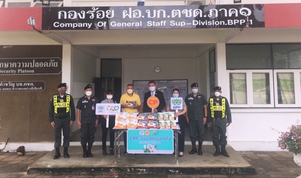 พล.ต.ต.กัญชล อินทราราม ผู้บังคับการตำรวจตระเวณชายแดนภาค 1 รับมอบผลิตภัณฑ์อาหารสำเร็จรูปพร้อมรับประทานหลากหลายเมนู จากซีพีเอฟ ภายใต้ “โครงการ CPF ส่งอาหารจากใจ ร่วมต้านภัยโควิด-19” โดยมี นายศรกฤษณ์ วัตตศิริ รองกรรมการผู้จัดการอาวุโส ด้านทรัพยากรบุคคล และชาวซีพีเอฟจิตอาสา เป็นผู้แทนบริษัทฯ ส่งมอบ ณ กองบังคับการตำรวจตระเวนชายแดนภาค 1 ต.คลองห้า อ.คลองหลวง จ.ปทุมธานี