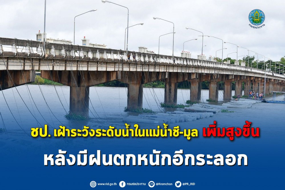 ทั้งนี้ นายประพิศ จันทร์มา อธิบดีกรมชลประทาน ได้สั่งการไปยังโครงการชลประทานในพื้นที่เสี่ยงภัยน้ำท่วม ให้เฝ้าระวังและติดตามสถานการณ์น้ำอย่างใกล้ชิด โดยเฉพาะบริเวณจุดเสี่ยงและพื้นที่ที่ยังมีน้ำท่วมขังอยู่ พร้อมทั้งประชาสัมพันธ์ข้อมูลและแจ้งเตือนประชาชนที่อาศัยอยู่บริเวณพื้นที่ริมฝั่งแม่น้ำชี แม่น้ำมูล และลำน้ำสาขา ให้ติดตามสถานการณ์อย่างใกล้ชิด รวมไปถึงการเฝ้าระวังผลกระทบที่อาจเกิดขึ้นจากระดับน้ำเพิ่มสูงขึ้นอีกในระยะนี้ หากประชาชนต้องการความช่วยเหลือติดต่อได้ที่โครงการชลประทานใกล้บ้าน หรือโทร.สายด่วนกรมชลประทาน 1460 ได้ตลอดเวลา