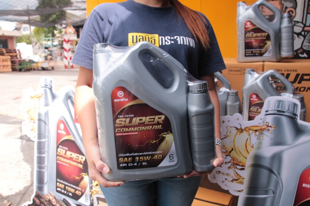 สำหรับผลิตภัณฑ์น้ำมันเครื่องยนต์ดีเซล ตราช้าง ซุปเปอร์ คอมมอนเรล SAE 15W-40 เหมาะสำหรับรถกระบะ รถอเนกประสงค์ และรถขนส่งพาณิชย์ที่ใช้งานหนัก รองรับเครื่องยนต์ดีเซลคอมมอลเรลทุกรุ่น รวมถึงเครื่องยนต์ที่ติดตั้งระบบ EGR มาพร้อมขนาดบรรจุภัณฑ์ 6 ลิตร (แถมฟรี 1 ลิตร) ช่วยตอบสนองความต้องการของผู้ใช้เลขไมล์สูงมากกว่า 150,000 กิโลเมตร ด้วยฟิล์มน้ำมันแข็งแรงทนต่อแรงกดอัดและลดการเสียดสีของชิ้นส่วนเครื่องยนต์แม้ในสภาวะการขับขี่ที่สมบุกสมบัน