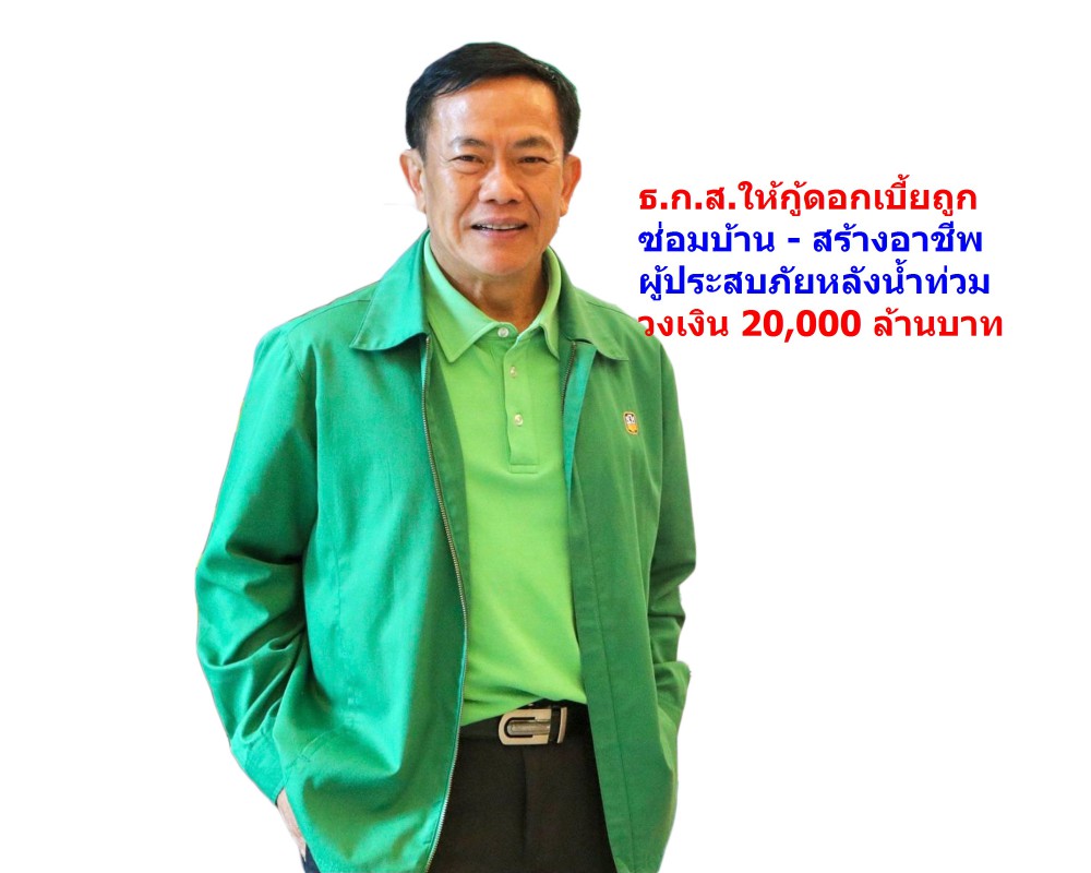 ธ.ก.ส.ออกมาตรการสินเชื่อฟื้นฟู เพื่อเป็นค่าลงทุนในการประกอบอาชีพ สร้างหรือซ่อมแซม ที่อยู่อาศัยรายละไม่เกิน 500,000 บาทดอกเบี้ยร้อยละ 4.5 ต่อปี และสินเชื่อฉุกเฉิน เพื่อเป็นค่าใช้จ่ายที่จำเป็นในครัวเรือน รายละไม่เกิน 50,000 บาท ดอกเบี้ย 0% 6 เดือน ให้กับเกษตรกรผู้ประสบอุทกภัย