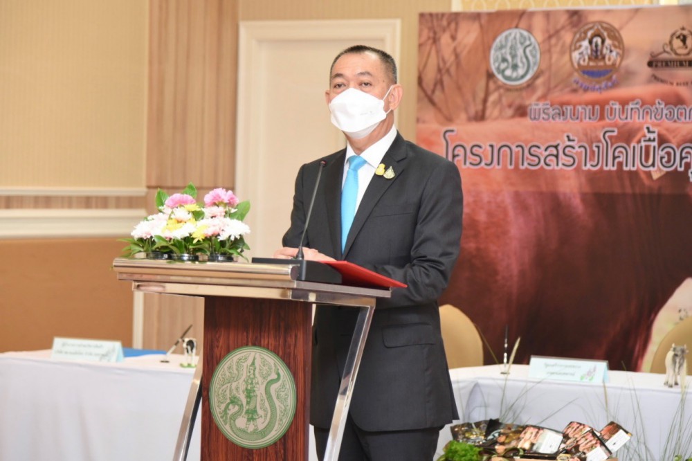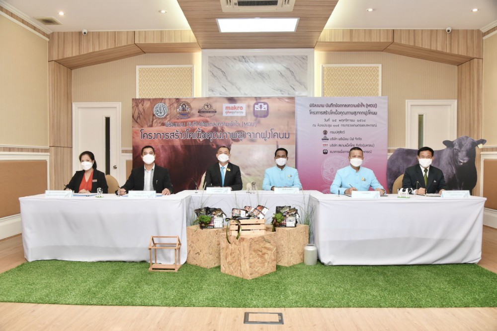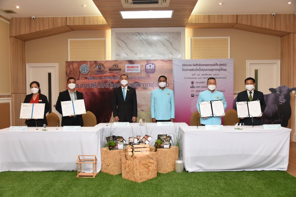 ดร.เฉลิมชัย ศรีอ่อน รัฐมนตรีว่าการกระทรวงเกษตรและสหกรณ์ เป็นประธานในพิธีลงนามบันทึกข้อตกลงความเข้ใจ (MOU) โครงการสร้างโคเนื้อคุณภาพสูงจากฝูงโคนม ระหว่างกรมปศุสัตว์ บริษัท พรีเมี่ยม บีฟ จำกัด, บริษัท สยามแม็คโคร จำกัด (มหาชน) และธนาคารเพื่อการเกษตรและสหกรณ์การเกษตร (ธ.ก.ส.) ณ กระทรวงเกษตรและสหกรณ์