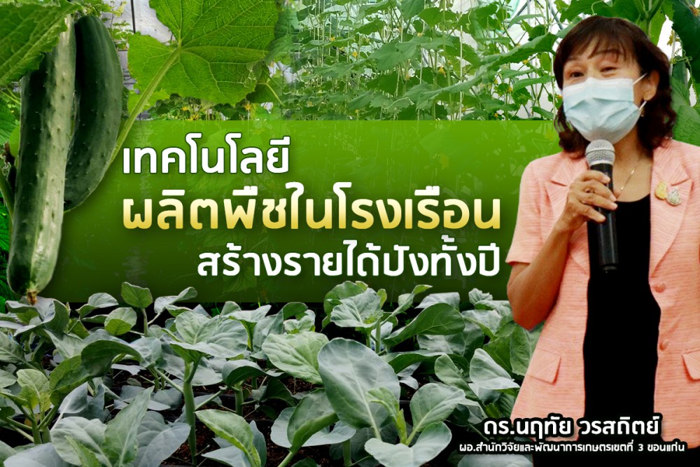 สวพ.3 ขอนแก่น ประสบผลสำเร็จอย่างงดงามในการวิจัยพัฒนาเทคโนโลยีผลิตพืชในโรงเรือน สามารถปลูกได้ทั้งปี ระบบปลูกพืช 9 ชนิด เหมาะสมกับพื้นที่ภาคอีสานตอนบน ตอบโจทย์ปัญหาโรคแมลงศัตรูพืชระบาด โรคเน่าในหน้าฝน ได้ฤกษ์ปูพรมขยายผลสู่เกษตรกร นำร่อง 2 พืชคะน้าฮ่องกงสร้างรายได้กว่า 8 หมื่นบาท/โรงเรือน ส่วนแตงกวาญี่ปุ่น มีรายได้รวมกว่า 17,000 บาท/รอบการผลิต