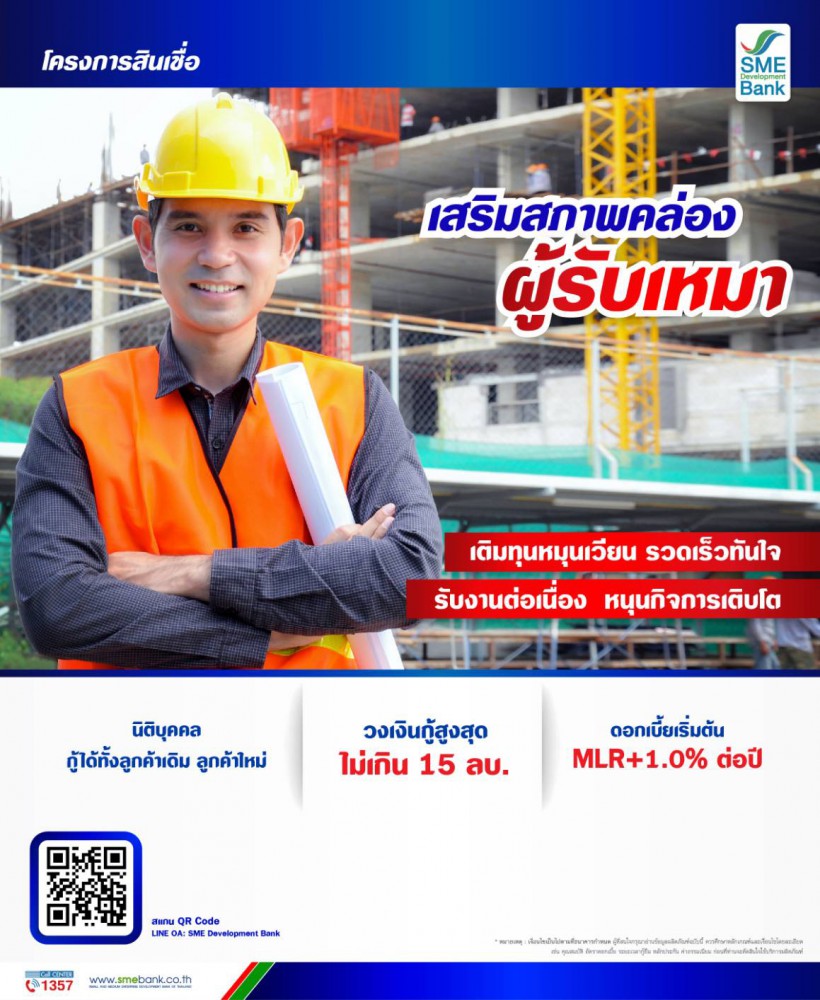 คุณสมบัติ ผู้กู้เป็นนิติบุคคล ดำเนินธุรกิจรับเหมามาไม่น้อยกว่า 1 ปี เปิดกว้างทั้งลูกค้าเก่าและลูกค้าใหม่ วงเงินกู้สูงสุดถึง 15 ล้านบาทต่อราย คิดอัตราดอกเบี้ยเริ่มต้น MLR+1.0% ต่อปี เปิดรับคำขอกู้จนถึงวันที่ 30 ธันวาคม 2565