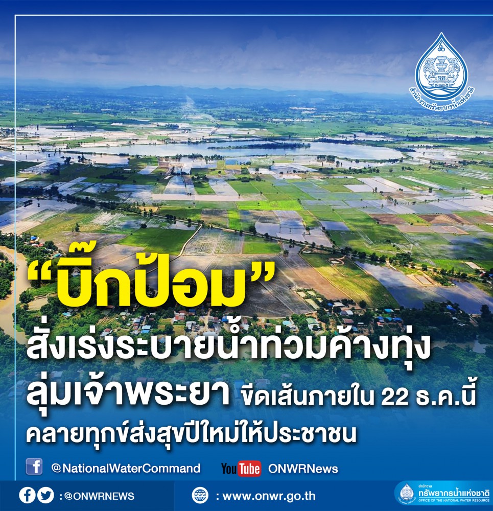 ดร.สุรสีห์ กิตติมณฑล เลขาธิการสำนักงานทรัพยากรน้ำแห่งชาติ (สทนช.) ในฐานะรองผู้อำนวยการกองอำนวยการน้ำแห่งชาติ (กอนช.) เปิดเผยว่า พลเอก ประวิตร วงษ์สุวรรณ รองนายกรัฐมนตรี ในฐานะผู้อำนวยการ กอนช. มีความเป็นห่วงประชาชนที่ยังคงได้รับผลกระทบจากสถานการณ์น้ำท่วมขังในพื้นที่ที่เหลือ จึงได้สั่งการและกำชับให้ กอนช. เร่งระบายน้ำท่วมขังในพื้นที่ลุ่มต่ำ โดยเฉพาะในลุ่มน้ำเจ้าพระยา รวมถึงลุ่มน้ำชี-มูล ให้เข้าสู่ภาวะปกติก่อนสิ้นปี 2564 เพื่อของขวัญปีใหม่ให้กับประชาชน พร้อมทั้งให้ติดตามการจัดสรรน้ำ การเพาะปลูกพืชในช่วงฤดูแล้ง และการดำเนินงานตามมาตรการรองรับสถานการณ์ขาดแคลนน้ำ ฤดูแล้ง ปี 2564/65 ทั้ง 9 มาตรการอย่างเคร่งครัด เพื่อให้เป็นไปตามแผนที่วางไว้