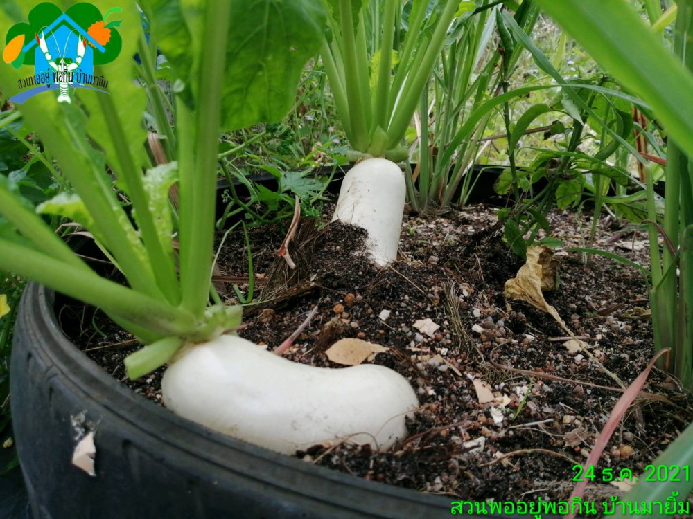 หลังจากที่ประสบผลสำเร็จในการใช้กระเบื้องมุ้งหลังคาเก่าๆสีแดง นำมาคลุมดินปลูก “ผักกาดหัว” หรือ “หัวไชเท้า” พบว่าได้ผลดีกว่าปลูกแบบทั่วไปมาแล้ว ล่าสุด “อ.ประทีป มายิ้ม” ปราชญ์เกษตรของแผ่นดิน สาขาปราชญ์เกษตร เศรษฐกิจพอเพียง และนายกสมาคมกุ้งก้ามแดงเพื่อเกษตรกรและสิ่งแวดล้อม แห่ง “ศูนย์การเรียนรู้ ชีววิถีเพื่อการพัฒนาอย่างยั่งยืน สวนพออยู่พอกิน บ้านมายิ้ม” ต.ห้วยใหญ่ อ.บางละมุง จ.ชลบุรี ได้ทดลองปลูกหัวไชเท้าผสมผสานกับพืชผักชนิดอื่น ในวงยางรถยนต์เก่า ปรากฏว่าได้ผลดีอีกเช่นกัน
