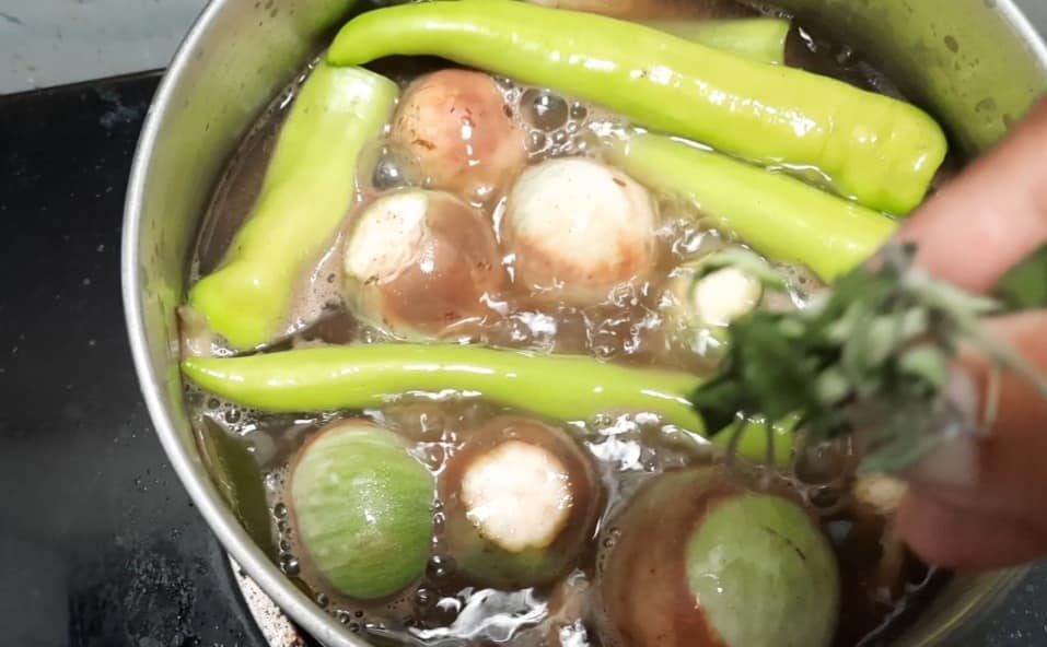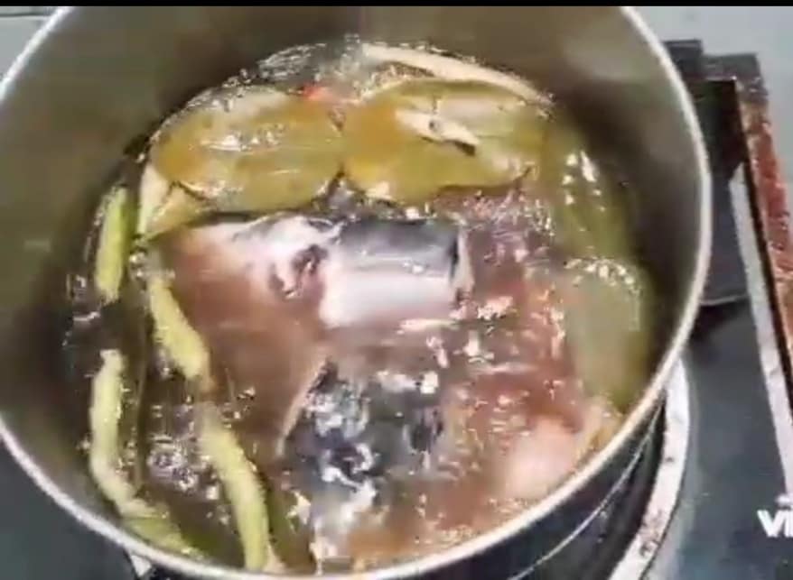 จากนั้น้ำใส่หม้อคำนวณให้พอดีกับวัตถุดิบ เทน้ำปลาร้าลงให้พอมีรสชาติเค็มตามที่ต้องการ ใส่เครื่องปรุง ตั้งบนเตาจนน้ำเดือด ใส่ปลาดุกที่ตัดเป็นท่อนๆ ตามด้วยผัก พอเกือบสุกใส่ใบกัญชา ปรุงจนสุก จนได้น้ำปลาร้าทรงเครื่องสูตรใส่ใบกัญมา ตักมารับประทานกับข้าวร้อน ๆได้แล้ว (รายละเอียดในคลิป)