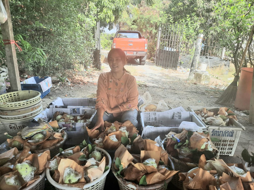 ล่าสุดขยายฐานปลูกฝัรั่งจาก ต.เกษตรพัฒนา อ.บ้านแพ้ว มาที่ ต.ท่าไม้ อ.กระทุ่มแบน จ.สมุทรสาคร โดยทดลองปลูกสายพันธุ์ใหม่เป็นฝรั่งไต้หวันไส้แดง “หงเป่าสือ” ทดอลองปลูกก่อน 300 ต้นในพื้นที่ 2 ไร่พบว่า ตลาดต้องการสูงมาก เพราะมีแต่คนขายกิ่ง วราภรณ์ จึงหันมาปลูกขายผลผลิตด้วย พบว่ามีราคาแพงกว่ากิมจูเท่าตัว ปัจจุบันกิมจูราคาจากสวน กก.ละ 30 บาท แต่หงเป่าสือราคา กก.ละ 70 บาท