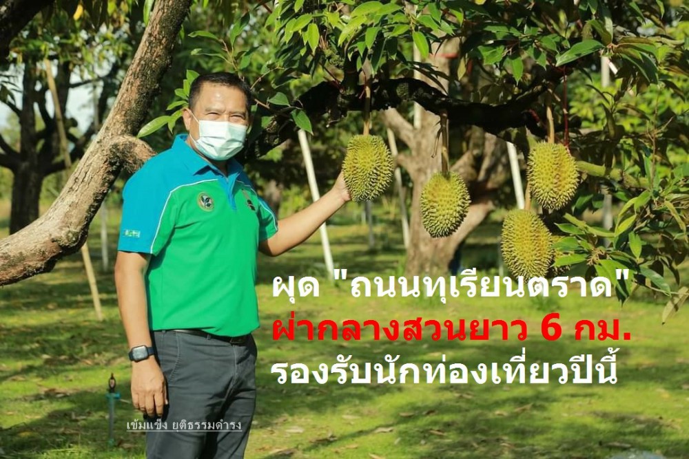กรมส่งเสริมการเกษตรจับมือกับแขวงทางหลวงชนบทตราด เนรมิต “ถนนทุเรียนตราด” ยาว 6 กม. จาก ต.อ่าวใหญ่ เขต อ.เมือง จ.ตราด ผ่านสวนทุเรียนที่กบ้านแหลมศอกไปท่าเรือแหลมศอก-เกาะกูด รองรับนักท่องเที่ยวในช่วงผลผลิตออกสู่ตลาด พร้อมชูเกษตรกรต้นแบบ 5 เสือคนทำจริง ผลิตทุเรียนคุณภาพและได้มาตรฐาน