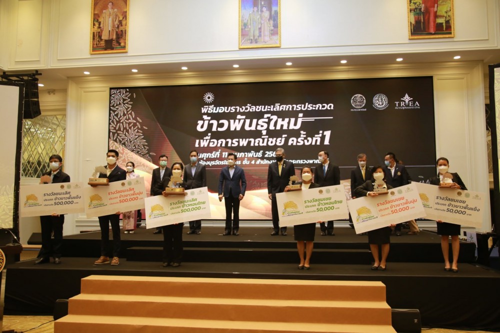 นางสาวนนทิชา วรรณสว่าง รองอธิบดีกรมการข้าว เปิดเผยว่า กรมการข้าวร่วมกับสมาคมผู้ส่งออกข้าวไทย สมาคมผู้รวบรวมและจำหน่ายเมล็ดพันธุ์ ดำเนินการจัดงาน “การประกวดข้าวพันธุ์ใหม่ เพื่อการพาณิชย์ครั้งที่ 1 (2564)” มีวัตถุประสงค์เพื่อสรรหาข้าวพันธุ์ใหม่ๆ ที่จะสามารถยกระดับขีดความสามารถในการแข่งขันของข้าวไทยในตลาดโลก ยกระดับการพัฒนา/ปรับปรุงพันธุ์ข้าวไทย ในการพัฒนาพันธุ์ข้าวคุณภาพดีเพื่อการส่งออก พร้อมเชิดชูงานวิจัยนวัตกรรมพันธุ์ข้าวและนักวิจัยข้าวของไทยโดยมุ่งหวังสูงสุดว่าประเทศไทยจะกลับมามีความสามารถในการแข่งขันในตลาดข้าวโลกได้อีกครั้ง โดยการประกาศผลและมอบรางวัลในครั้งนี้ได้รับเกียรติจาก นายจุรินทร์ ลักษณวิศิษฎ์ รองนายกรัฐมนตรีและรัฐมนตรีว่าการกระทรวงพาณิชย์ เป็นประธาน
