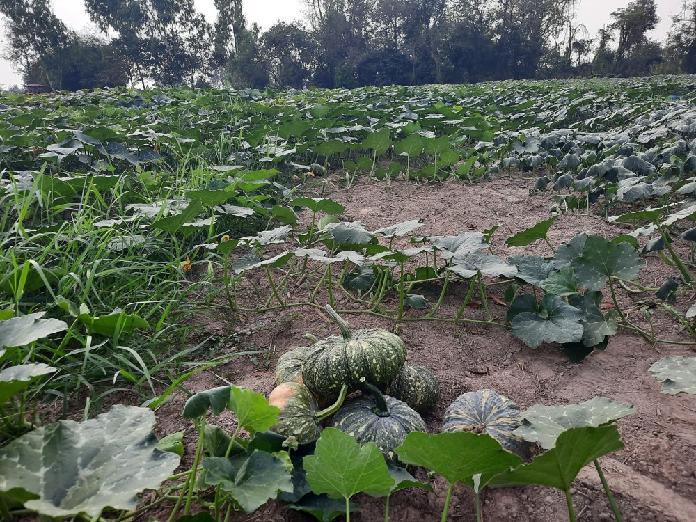 สุชิน บอกว่าอีกว่า การปลูกฝักทองไม่มีอะไรซับซ้อนมากนัก เพียงไถพรวนดิน 2 รอบ ยกร่องเล็กน้อยสูงราว 30 ซม.ลงปุ๋ยสูตรเสมอ 15-15-15 ไร่ละ 1 ลูก หรือ 50 กก.ผสมปุ๋ยคอกบ้างเล็กน้อย รองพื้น ลงเมล็ดพันธุ์ฝักทองลง 10x 10 ซม.เดินสายระบบน้ำหยด ปล่อยน้ำวันละ 15 นาที