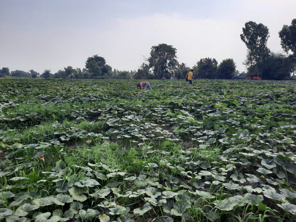 “สุชิน ใหม่หลำ” ผู้ใหญ่บ้านหมู่ 6 ต.หนองแซง อ.หันคา จ.ชัยนาท อีกคนหนึ่งที่ตัดสินใจเลือกปลูกพืชใช้น้ำน้อยหลังนาปี โดยเขาเลือกปลูกฝักทองบนพื้นที่ 2 แปลง แปลงแรก 4 ไร่ และอีกแปลง 6 ไร่รวมแล้วกว่า 10 ไร่ พบว่ารายดี