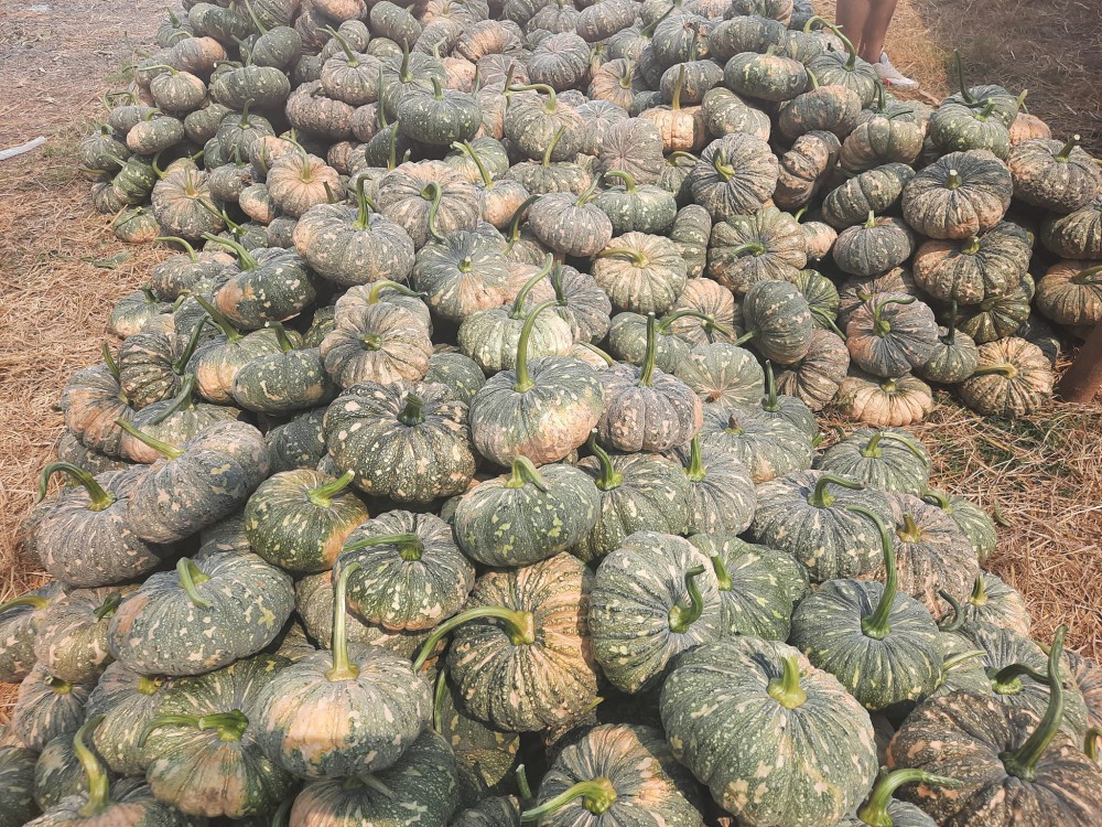 จากนั้นใช้ปุ๋ย สูตรเสมอ 15-15-15 ราวไร่ละ 1 กก.ผสมกับปุ๋ยยูเรีย 500-600 กรัมต่อไร่ ผสมน้ำ 20 ลิตรรดต้นทุก 3 วัน พอต้นสมบูรณ์ลดปริมาณปุ๋ยครึ่งหนึ่ง พร้อมฉีดฮอร์โมนทางใบบำรุงต้นบ้าง พอฝักทองโตเป็นพุ่มต้องฉีดยาป้องกันเชื้อรา รากเน่า และแมลงเต่าทองอาทิตย์ละครั้งรอบหนึ่งราว 4-5 ครั้ง จนต้นฝักทองอายุ 40 วันเริ่มออกดอก รวมใช้เวลา 70-75 วันเก็บผลผลิตได้แล้ว