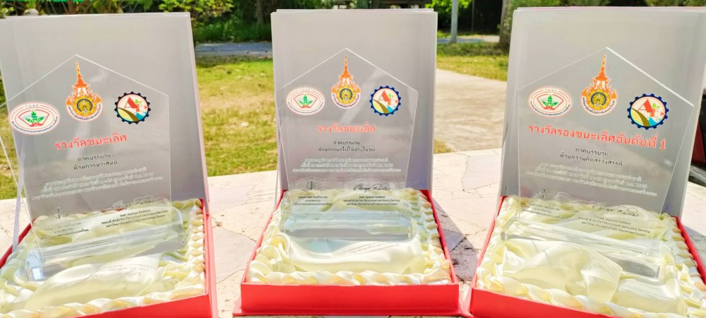 ผลงานวิจัยดังกล่าว ได้รับ 3 รางวัล ได้แก่ 1.รางวัลชนะเลิศ ด้านการนำไปใช้ประโยชน์, 2.รางวัลชนะเลิศด้านการนำเสนอ,และ 3.รางวัลรองชนะเลิศอันดับ 1 ด้านความคิดสร้างสรรค์ จากการแข่งขันทักษะวิศวกรรมเกษตร ระดับประเทศ ในงานประชุมวิชาการโครงงานวิศวกรรมเกษตรแห่งชาติ ครั้งที่ 28 ประจำปี 2565 จัดโดย สำนักวิชาวิศวกรรมศาสตร์และนวัตกรรม มหาวิทยาลัยเทคโนโลยีราชมงคลตะวันออกร่วมกับ สมาคมวิศวกรรมเกษตรแห่งประเทศไทย TSAE – Thai Society of Agricultural Engineering เมื่อวันที่ 24 – 25 กุมภาพันธ์ 2565 ที่ผ่านมา
