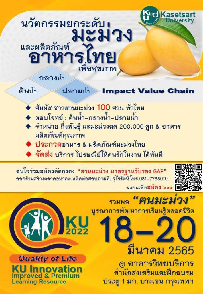 ตอบโจทย์ : ต้นน้ำ-กลางน้ำ-ปลายน้ำ จำหน่ายกิ่งพันธุ์ ผลมะม่วงสด ภายในงานจัด กิจกรรมการประกวดอาหาร และผลิตภัณฑ์มะม่วง สำหรับผู้ที่สนใจสามารถสมัครได้