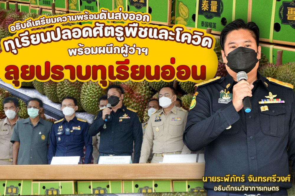 วันที่ 14 มีนาคม 2565 นายระพีภัทร์ จันทรศรีวงศ์ อธิบดีกรมวิชาการเกษตร พร้อมด้วยนายสุธี ทองแย้ม ผู้ว่าราชการจังหวัดจันทบุรี ร่วมแถลงข่าวถึงกรณีการจับกุมและดำเนินคดีกับผู้ที่ตัดทุเรียนไม่ได้คุณภาพ(อ่อน) เพื่อการส่งออก ณ สถานีตำรวจภูธรท่าใหม่ จังหวัดจันทบุรี