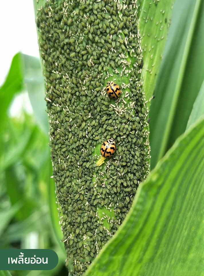 นายศรุต สุทธิอารมณ์ ผู้อำนวยการสำนักวิจัยพัฒนาการอารักขาพืช กรมวิชาการเกษตร เปิดเผยว่า ในช่วงที่ข้าวโพดหวานและข้าวโพดเลี้ยงสัตว์อยู่ในระยะออกดอกถึงระยะติดฝักให้เกษตรกรเฝ้าระวังเพลี้ยอ่อนข้าวโพดเข้าทำลาย โดยตัวอ่อนและตัวเต็มวัยจะดูดกินน้ำเลี้ยงจากส่วนต่าง ๆ ของใบ และช่อดอกตัวผู้ ถ้าช่อดอกมีเพลี้ยอ่อนเกาะกินอยู่มากจะส่งผลให้ช่อดอกไม่บาน การติดเมล็ดน้อยและทำให้เมล็ดแก่เร็ว ทั้งที่เมล็ดยังไม่เต็มฝัก หากมีการระบาดมาก จะพบกระจายอยู่ตามส่วนต่าง ๆ ของลำต้น กาบหุ้มฝัก โดยเพลี้ยอ่อนชนิดมีปีกบินมาจากแปลงใกล้เคียง ตั้งแต่ข้าวโพดอายุประมาณ 15 วัน หลังจากนั้นอีก 1 – 2 สัปดาห์ จะพบเพลี้ยอ่อนออกลูกเป็นตัวอ่อนรวมกันเป็นกลุ่มโดยเฉพาะบริเวณใต้ใบ โดยเพลี้ยอ่อนจะแพร่ขยายจากใบล่างขึ้นมาบนใบเรื่อย ๆ และขยายพันธุ์เพิ่มปริมาณอย่างรวดเร็วจนพบปริมาณสูงสุดในระยะข้าวโพดกำลังผสมเกสร มักพบเกาะเป็นกลุ่ม ๆ ดูดกินน้ำเลี้ยงจากส่วนต่าง ๆ ของต้นข้าวโพด เช่น ยอด กาบใบ โคนใบ กาบฝัก โดยจะพบมากที่สุดบริเวณช่อดอก ทำให้บริเวณที่ถูกดูดกินแสดงอาการเป็นจุดสีเหลืองปนแดง