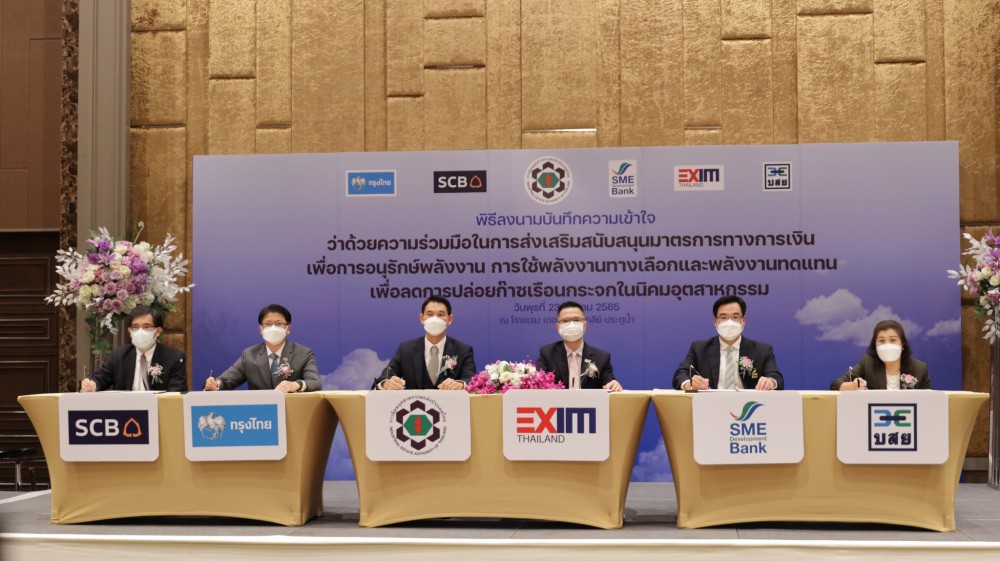 นายโมกุล โปษยะพิสิษฐ์ รองกรรมการผู้จัดการ ธนาคารพัฒนาวิสาหกิจขนาดกลางและขนาดย่อมแห่งประเทศไทย (ธพว.) หรือ SME D Bank ธนาคารเพื่อเอสเอ็มอีไทย ส่งเสริมผู้ประกอบการสู่การเติบโตอย่างยั่งยืน สอดคล้องกับนโยบายรัฐบาล ตามยุทธศาสตร์การขับเคลื่อนการพัฒนาประเทศไทย ด้วยเศรษฐกิจชีวภาพ เศรษฐกิจหมุนเวียน เศรษฐกิจสีเขียว (BCG Model) ร่วมกับ นายวีริศ อัมระปาล ผู้ว่าการ การนิคมอุตสาหกรรมแห่งประเทศไทย (กนอ.) ในฐานะประธานในพิธีลงนามบันทึกความเข้าใจการส่งเสริมมาตรการสนับสนุนทางการเงิน เพื่อการอนุรักษ์พลังงาน การใช้พลังงานทางเลือก และพลังงานทดแทน เพื่อลดการปล่อยก๊าซเรือนกระจก