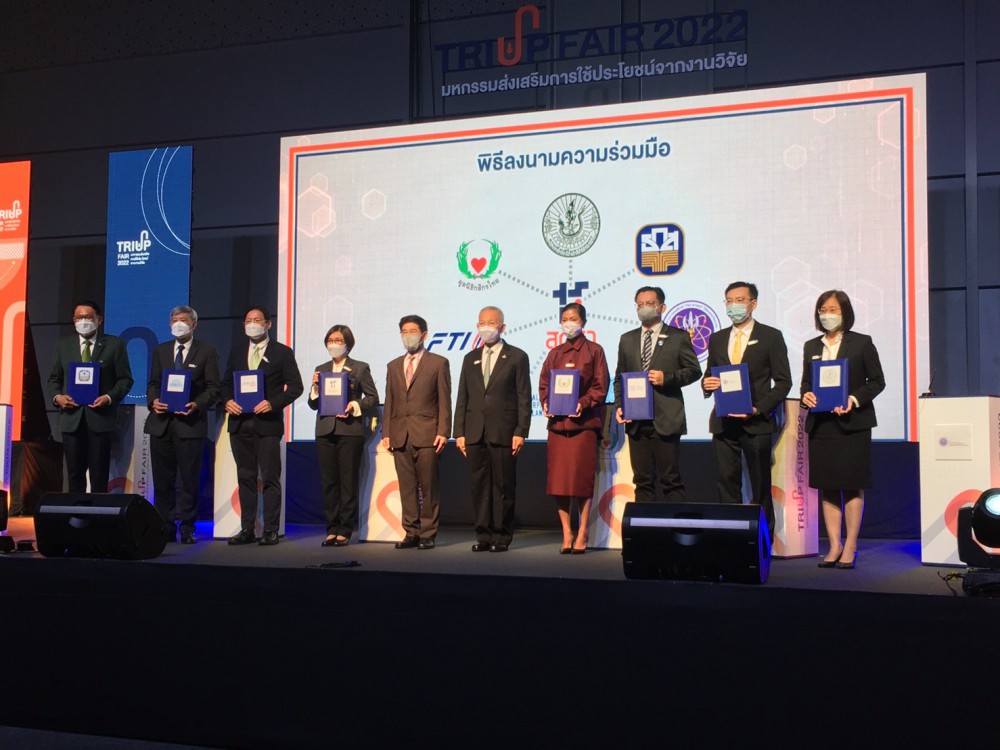 ทั้งนี้มีการจัดพิธีลงนามภายในงาน มหกรรมส่งเสริมการใช้ประโยชน์จากงานวิจัย (TRIUP Fair 2022) ภายใต้แนวคิด : ปลดล็อคความเป็นเจ้าของงานวิจัย สร้างศักยภาพไทยไร้ขีดจำกัด โดยมี ศ.กิตติคุณ นพ.สุทธิพร จิตต์มิตรภาพ ประธานคณะกรรมการส่งเสริมวิทยาศาสตร์ วิจัยและนวัตกรรม (กสว.) เป็นสักขีพยาน ณ มิตรทาวน์ Hall1-2 ชั้น 5 ศูนย์การค้าสามย่านมิตรทาวน์ กรุงเทพมหานคร