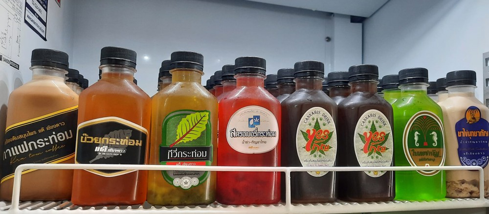 “ผลิตภัณฑ์มีหลากหลายกว่า 20 รายการ ตั้งแต่น้ำบ๊วยผสมกระท่อม น้ำสตรอเบอร์รี่ น้ำใบเตย ที่ผสมทั้งกระท่อม และกัญชา แต่ที่เป็นซิกเนเจอร์ และได้รับความนิยมมากๆ เข้ากับยุคของการแพร่ระบาดของเชื้อไว้รัสโควิด-19 คือสมุนไพรที่สามารถยับยั้งเชื้อโควิด-19 อย่างน้ำกระชายผสมกัญฯ ขายดีมาก ดื่มแล้วมีสรรพคุณทางสมุนไพรลดความเสี่ยงจากการติดเชื้อแล้ว ยังทำให้อารมณ์ดีด้วย”