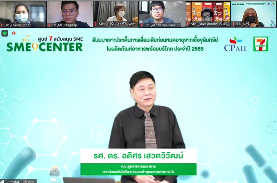 ศูนย์ 7 สนับสนุน SME ภายใต้การขับเคลื่อนของบริษัท ซีพี ออลล์ จำกัด (มหาชน) เดินหน้าให้ความรู้ต่อเนื่อง จัดสัมมนาออนไลน์“เจาะประเด็นการเสื่อมเสียของอาหารก่อนหมดอายุจากเชื้อจุลินทรีย์ในผลิตภัณฑ์อาหารพร้อมบริโภค”เชิญวิทยากรผู้เชี่ยวชาญด้านต่างๆ ติวเข้มและอัพเดทความรู้ใหม่ๆ แก่ผู้ประกอบการ SME
