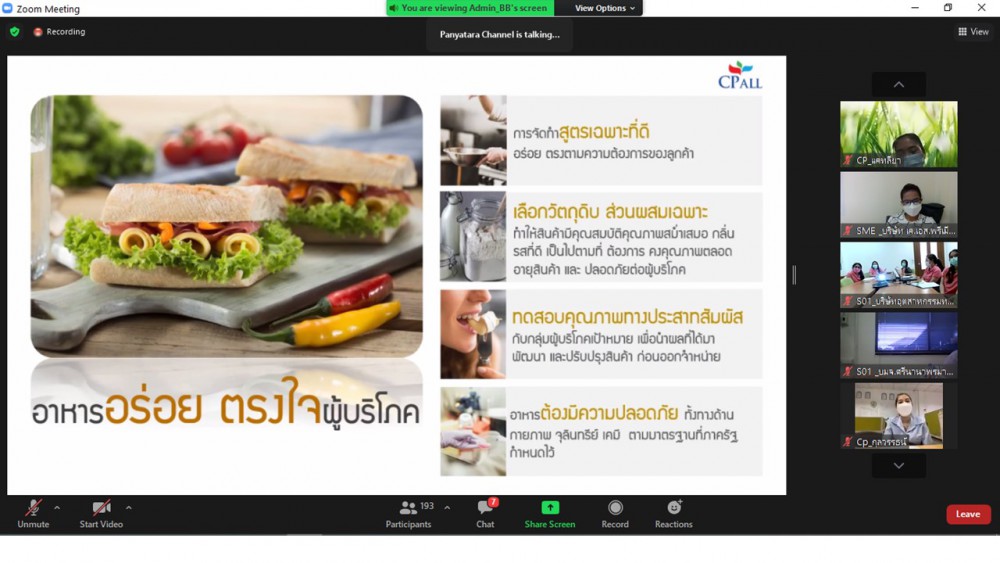 รวมถึงให้ความรู้เรื่องการผลิตอาหารให้ได้มาตรฐาน วิเคราะห์และแลกเปลี่ยนมุมมองในการจัดการเชิงป้องกันการเสื่อมเสียคุณภาพของผลิตภัณฑ์ในอุตสาหกรรมอาหารพร้อมด้วยวิทยากรจากซีพี ออลล์ ร่วมถ่ายทอดประสบการณ์โดยมีผู้ประกอบการ SME ให้ความสนใจร่วมฟังสัมมนาออนไลน์เป็นจำนวนมาก
